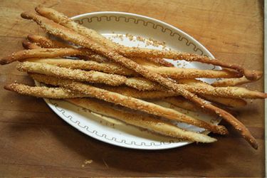 Bake dough until puffed and firm to the touch and just beginning to brown around the very edges (though still pale overall), about 25 minutes. Cool directly on baking sheet for about 5 minutes, then transfer to a cutting board and let cool 5 minutes more. While dough is still warm, use a long, thin, and very sharp serrated knife to cut log at a slight angle into about 25 pieces, each just over 1/2 inch wide (see notes).