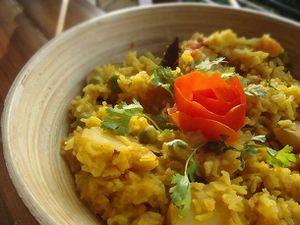 Beyond Curry: Khichdi with Eggplant Fritters Recipe