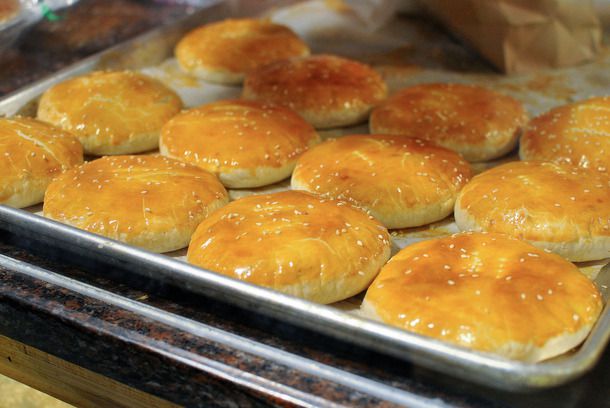 The second all-important rule? Don't judge a bakery by its looks. Those pristine-looking layer cakes you see? Usually not worth your time. That said, there are a few critical warning signs to watch out for, like dry or pale-looking buns or sesame balls with sunken spots. A quick squeeze of your bun with the provided tongs will give you a sense of freshness.