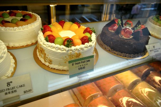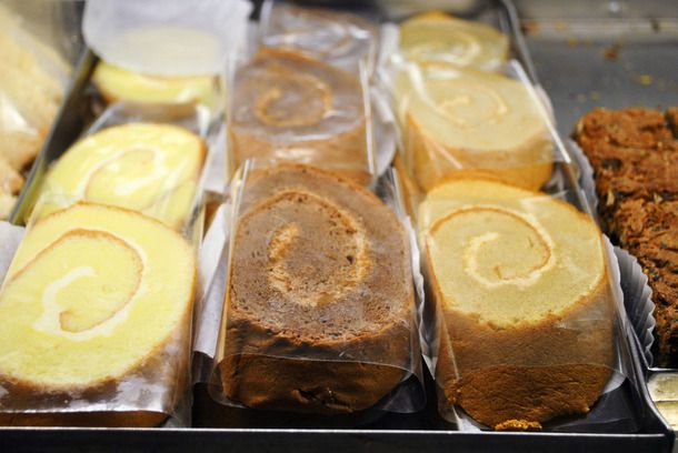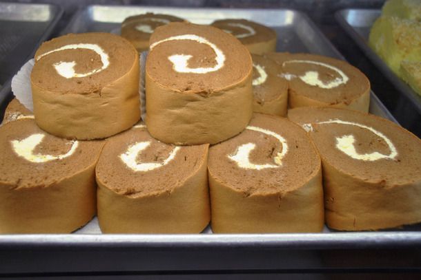 Roll cakes are like sponge cakes with a denser batter that's baked into a flat sheet and then rolled up with a slightly salty cream filling, usually made of shortening. Almost all bakeries make the plain variety, but if you're lucky, you can find some more interesting flavors: coffee, mango, and green tea. Chinatown is full of bad roll cakes—stale cake or too-sweet greasy frosting—but there were a few clear winners.