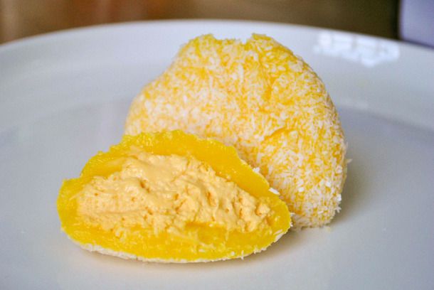 Tai Pan's mango mochi ranks as one of the best sweets across this entire tasting. The little blobs are creamy and taste precisely of fresh, ripe mango.Fay Da's taro mochi were also good, but less so than their winning taro puff, as this rice ball was a little too uniformly starchy.