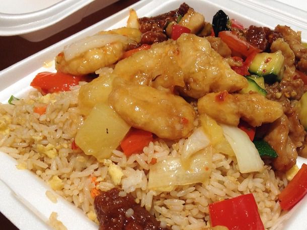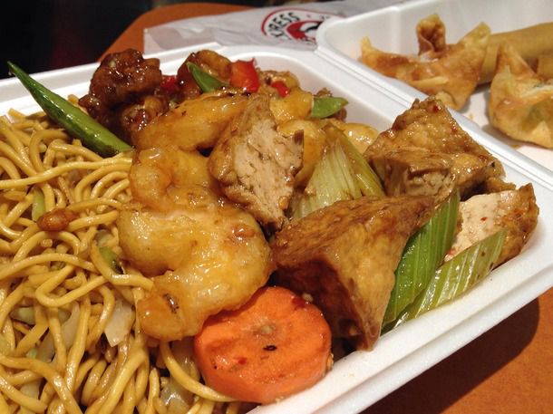 This is a little tricky, since the options vary from day to day and Panda to Panda.* The logical place to start, however, is the dish that made this place what it is: orange chicken, battered and wok-tossed in that familiar sticky tangy sauce. Since they go through literally millions of pounds of this stuff annually, it's always replenished in big batches, so it's a good bet in terms of freshness. For a small upcharge, they also offer a version with bits of bacon. It's up to you, and only you, to look deep within yourself and decide if that is something you want on your conscience.
