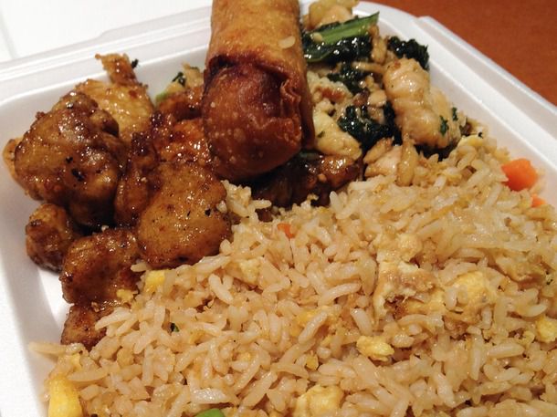 Panda sells items à la carte, but most customers opt for the "create your plate" combo option, with either two or three mains and a side, all piled into a styrofoam container with the heft of an Olympic shot put. Options include several types of rice; chow mein, tossed with celery, onions and cabbage; or mixed steamed veggies. The fresh-cut vegetables, typically crisp, are obviously the wisest nutritional choice here, but you already know you're not doing that, so I suggest opting for the simple fried rice. It's a popular pick, meaning it's replenished often, which will also save time if they don't have white or brown rice at the ready. The noodles, meanwhile, can get a little dry in the steam table.