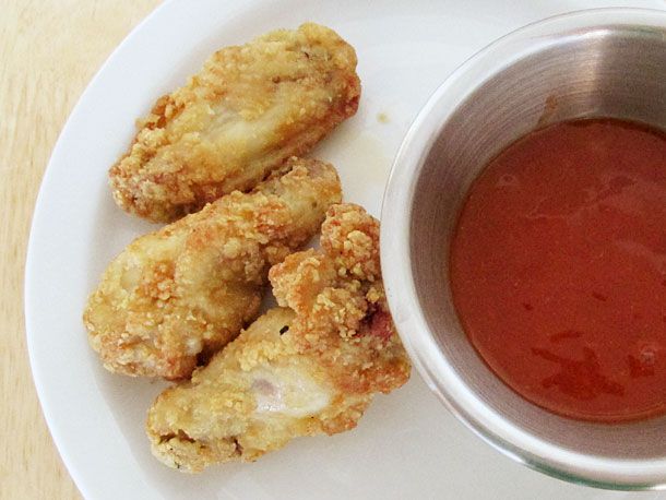 But the T.G.I. Friday wings, once assembled, did taste better than the Tyson and Perdue models. The wheat starch and rice flour breading still managed to get fairly soggy despite the subtraction of sauce and the addition of flipping, but the vinegar and cayenne sauce was worth the extra step. It was well rounded and also the hottest sauce I tasted, comparing favorably to a thickened Texas Pete's.