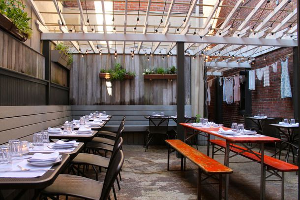 The hidden garden-style patio, accessible only to those who can beeline through the bar without getting distracted by all those perfect Sazeracs and Hanky Pankys, are rewarded with an escapist dinner setting, all trellises and tables and smooth old bricks. It's particularly welcoming on warm nights, where parties rip through offerings like Jacobson's herb fazzoletti with spring vegetables, white wine, Parmesan, and his own guanciale.