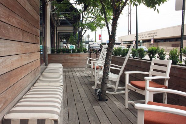 After putting down orders of boiled peanut hummus, yeast roll fried oyster sliders (best $5 bite in the city?), and Nashville-inspired hot chicken, stalk out a seat on the Ham's teeny but comfortable front-side patio. The 3100 block of Walnut Street isn't exactly Walden Pond, but it's difficult to avoid relaxation once you settle into a bench or rocking chair, cocktail or rocks-glass sipper of small-batch bourbon clutched in your hand.