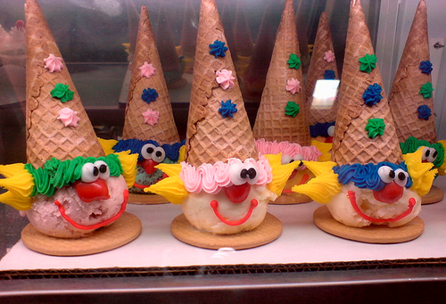 Love for Clown Cones related to their rarity. Like diamonds, they existed in abundance, but tightfisted parents controlled the market. Their unwillingness to shell out four times the cost of a single scoop turned the Clown Cone (in all frankness a cheap conglomeration of icing squiggles and horror) into the most desirable of treats.