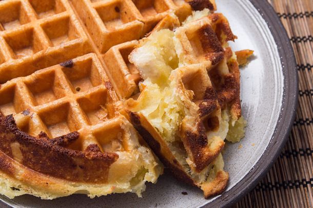 I was inspired by pithiviers, a French dessert that's basically a puff pastry pie most often filled with frangipane. At Christmastime in France, it's common to prepare a pithivier-type dessert called galette des rois (king cake) with a dried fava bean hidden in the frangipane center. Whichever little kid gets the slice with the fava bean gets to be king or queen for the day. You can hide a fava bean in your waffle too, if playing pretend royalty is your idea of fun (I take no responsibility for chipped teeth).