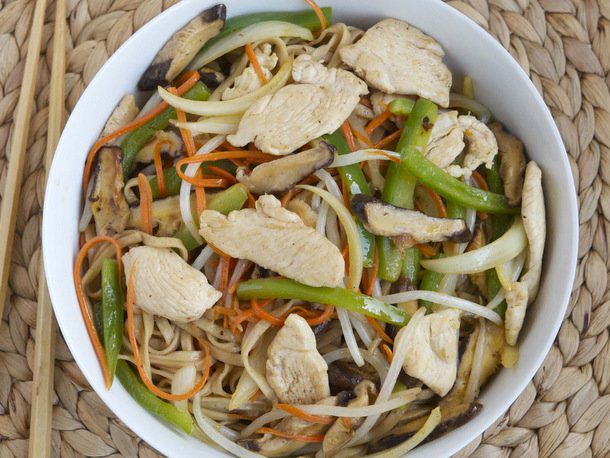 When properly made, chicken chow mein is American-style Chinese comfort food at its best--stir-fried noodles, chicken, and vegetables doused in a simple, sweet and salty sauce will make any tired and hungry eater smile. All too often, however, chow mein comes slick with grease and full of over-cooked chunks of stringy chicken. Diana Kuan's recipe in The Chinese Takeout Cookbook solves these problems with ease. The chicken spends no more than four minutes on the heat, and the oil is reduced to a modest 3 tablespoons (just enough to keep the noodles from fusing to the pan). A quick soy and rice wine marinade adds more oomph to the chicken, and the use of dried shiitake mushrooms gives the final dish savoriness and depth.