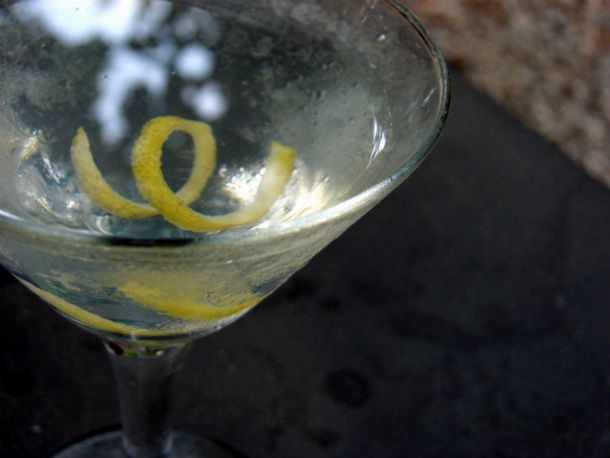 After that, though, it's a question of garnish. The simplest is the lemon twist, and it's my preference these days for nearly every martini I drink. The gin already contains citrus, and so the lemon oils from the twist enhance the fruit and help it rise up alongside the juniper.