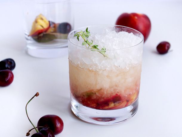 This cocktail makes the most of even less-than-perfectly-sweet nectarines. Grilled alongside a handful of cherries, the fruit gains a deeper, richer flavor that's just right for muddling with thyme and mixing with aged cachaça.