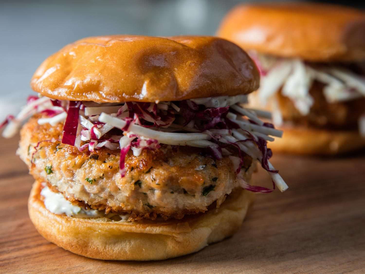 A salmon burger is one of those things that always sounds good on paper, but never lives up to its promise on the plate. They're almost always dry and crumbly and low on flavor. I decided it was time to make a salmon burger that was exactly the way I've always wanted one to be, testing everything from how to chop the fish (answer: by hand) to how to incorporate bread crumbs—not in the mix itself, but instead as a coating on each patty, which creates a crispy crust while acting as a layer of insulation that protects the fish from overcooking.