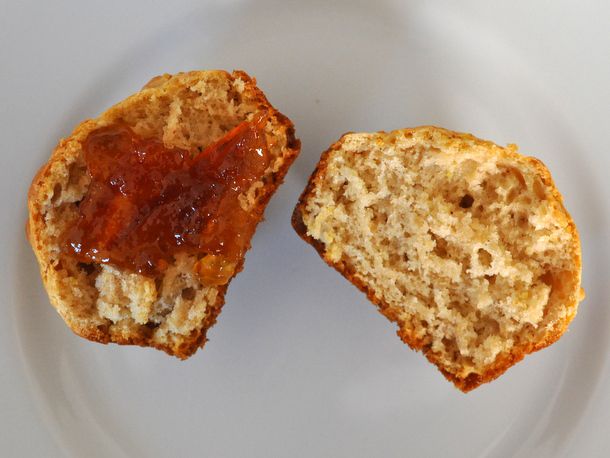 Fill each muffin cup 3/4 full with batter then bake for 20 minutes or until golden on top and a cake tester inserted into the middle of a muffin comes out clean. Let cool 5 minutes then transfer to a wire rack to finish cooling. Serve with thick cut marmalade for extra citrus flavor.