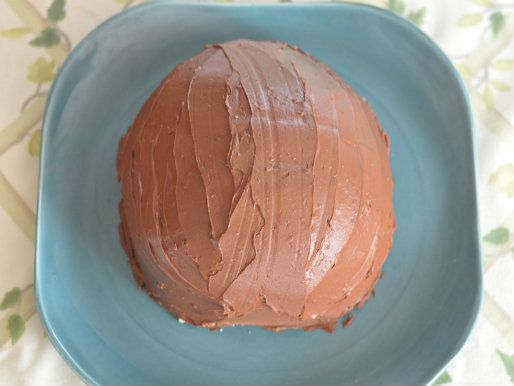 Once layers are arranged, use a sharp knife to carefully trim the outer edges into a more egg-like shape. You can adhere the trimmed pieces with frosting if desired to add additional shaping (I added a little piece that had been trimmed off the edge to the "tip" of the egg to give it a more rounded look).