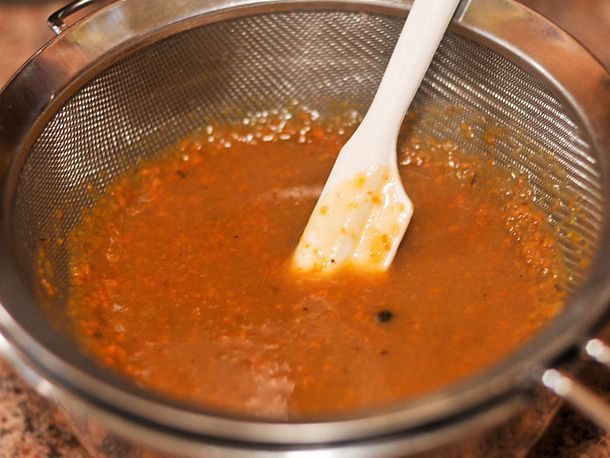 There's a lot right here with developing a complex flavor profile, starting with browning a mixture of vegetables; their deepened flavors are later picked up by the gravy. Then both chicken and beef stock are used, along with additional seasonings of bay leaf, thyme, and peppercorns.