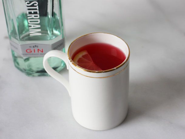 Autumn Giles This rosy-colored hot toddy gets its hue from an easy syrup made by cooking cranberries with sugar and water. Fresh mint adds aroma and lemon brings it all together. If you've never tried a gin hot toddy, we highly recommend you get on it before the weather gets too balmy.