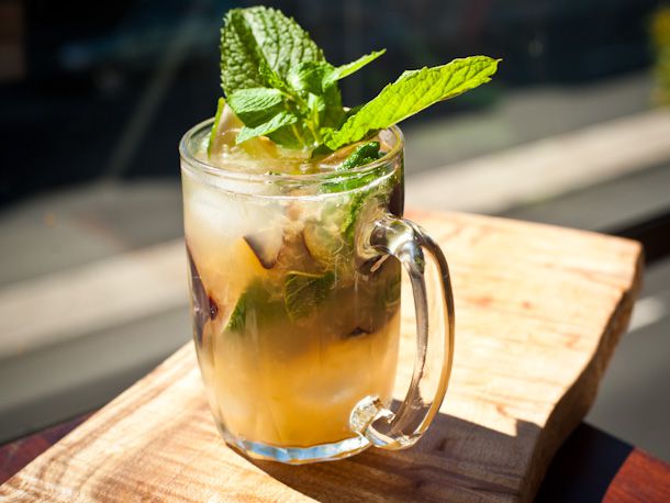 If you went a little overboard at the farmers' market, you're in luck, because stone fruit is excellent in cocktails. Here, ripe plums or pluots contribute tangy flavor to a rum drink with just a hint of mint. Get your muscles ready: this one needs quite a bit of shaking.