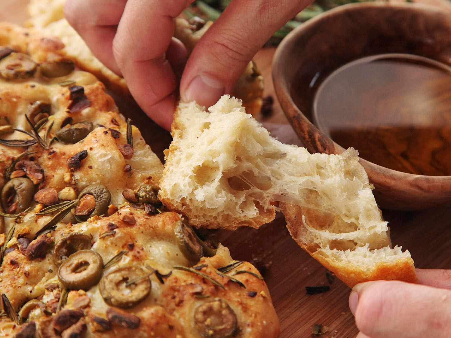Easy No-Knead Olive-Rosemary Focaccia With Pistachios