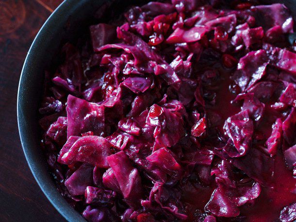 First, chop a head of the red stuff into rough pieces, then send it on a trip in a red wine sauce. Once tender, finish the cabbage with silky burre mane (butter and flour mixture), and dot it with tart dried cranberries for a vibrant, silky side dish.