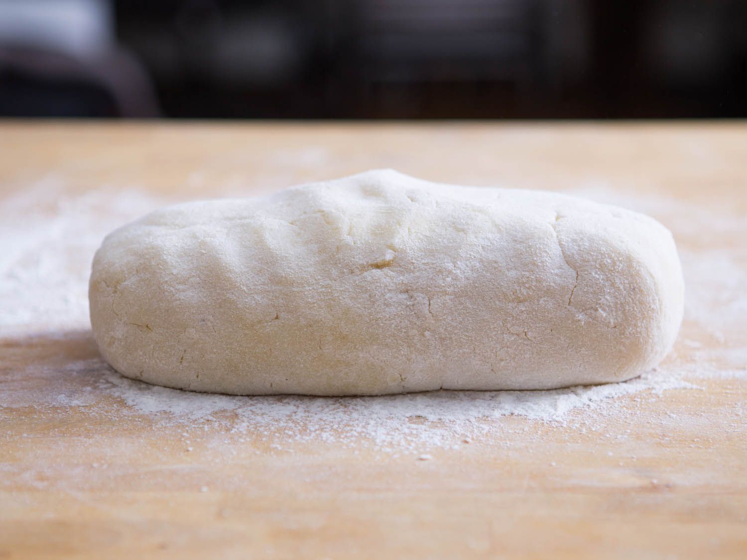 Clean work area well and dust with fresh flour. Using bench scraper, slice off a roughly 2-inch-thick portion of dough and roll into a snake about 1/2 inch thick; use a light touch as you roll, trying to use your palms more than your fingers, and dusting as necessary with flour to prevent sticking.