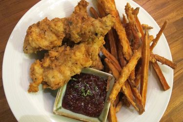 I feel green chiles pair far better with chicken than red ones, especially in quick-cooking applications like frying. And all the more so when you bring buttermilk into the equation, whose twang is elevated by green chile's fresh flavor. You can dredge your chicken in flour once for a lighter coating or twice for a heavier, crispier skin. If you dredge a second time, you can use the leftover buttermilk brine.