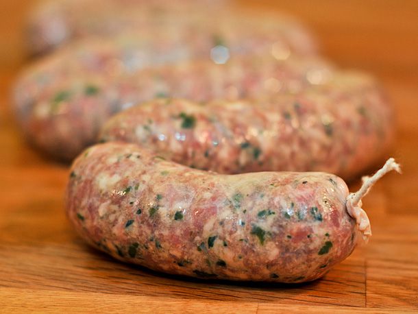 Natural hog casings, soaked in lukewarm water for at least 30 minutes and rinsed
