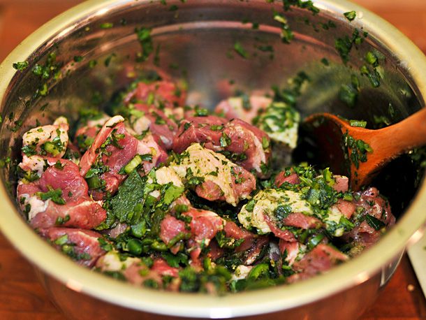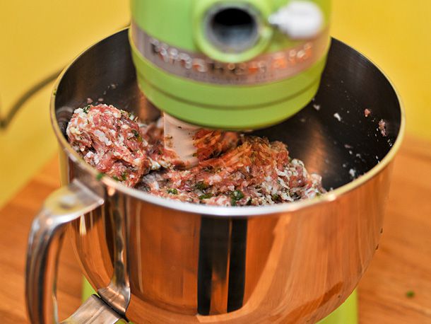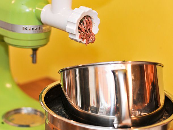 Grind the mixture through the small die of a meat grinder into a bowl set in ice.