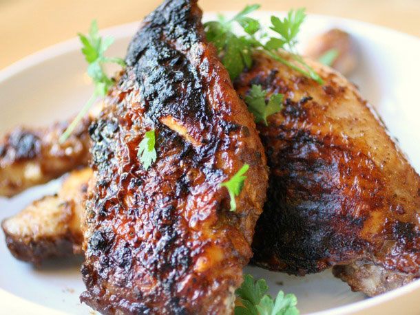 In the spring and summertime, sitting in a kitchen watching a hot stew bubble away is unthinkable. Criminal! But that doesn't mean that classics like coq au vin are any less delicious. Here, all the flavors of coq au vin, from the bacon to the onions and mushrooms and wine, condensed into a thick, earthy, completely unique barbecue sauce that is slathered onto wine-soaked, highly inebriated chicken. Grilled on a hot grill, it's an elegant, but easy and unique take on the classic stewy coq au vin, fit for a balmy night.