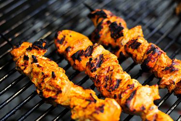Preheat a cast iron grill pan or a grill to medium heat. Season the chicken with salt and pepper, and toss in about 1/3 of the barbecue sauce. Lightly oil the hot grill and cook chicken turning once, until breasts register 155°F on an instant-read thermometer and legs register 165°F, about 30 minutes. If chicken skin begins to burn, reduce heat and continue cooking. Remove chicken from grill as it reaches temperature and tent with foil to keep warm. Allow chicken to rest for 5 minutes, then serve.