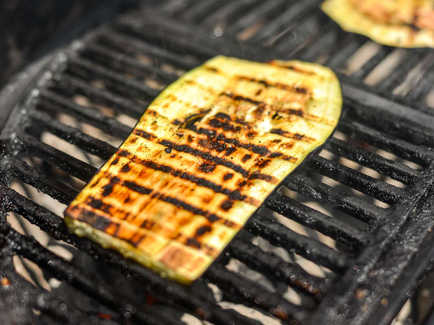 - Eggplant slices that are 1/4 inch thick are sturdy enough to hold together on the grill yet thin enough to roll up once cooked.