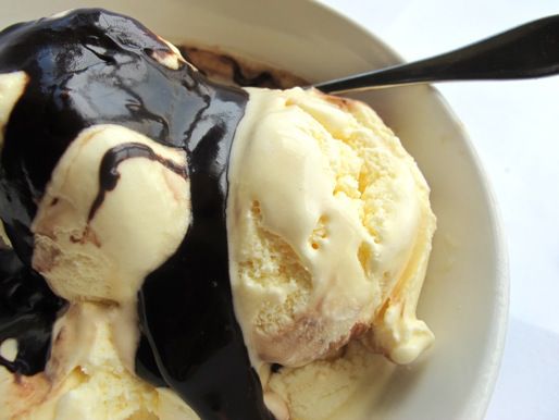 Assuming that my palate for fine chocolate has developed since my ice-cream-topping-ladling days, I will say that this homemade fudge is the one to beat. Jet black from the cocoa and chocolate, and not too sweet, it's so good you could even skip the ice cream. Just let it cool, grab a spoon, and dive in.
