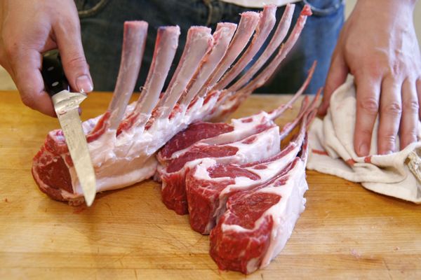 A Frenched lamb rack and four double-cut chops, ready for roasting or grilling. Now wasn't that much easier than you thought it'd be? Want to make it even easier? Next time, ask your butcher to do it for you.