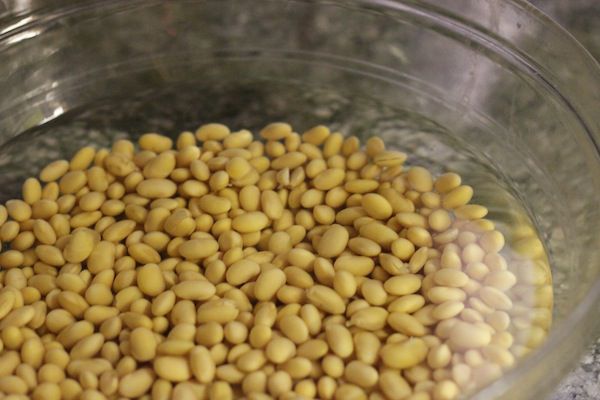 To make 6 appetizer-sized servings, rinse and soak one cup of dried soybeans for 8 to 10 hours in plenty of water.