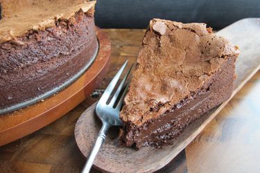 Depending on serving temperature, you'll get two different textures out of this cake. At room temperature it's luxuriously soft, like mousse. When chilled, it turns dense and fudgey, an equally enticing option. Either way, dust it with a touch of powdered sugar before serving for a final dose of class.