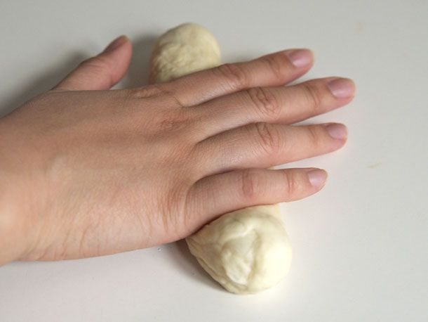 Ball a portion of dough, then roll it into a "rope" about 7 inches long and about 1 inch thick. (Tip: I like to taper the ends slightly in preparation for the next step.)