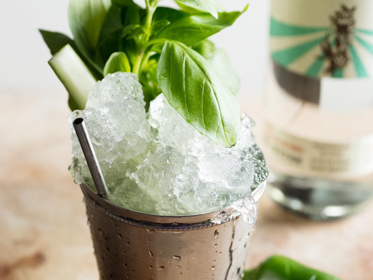 El Derby Ahumado (Basil, Cucumber, Jalapeño, and Mezcal Julep)