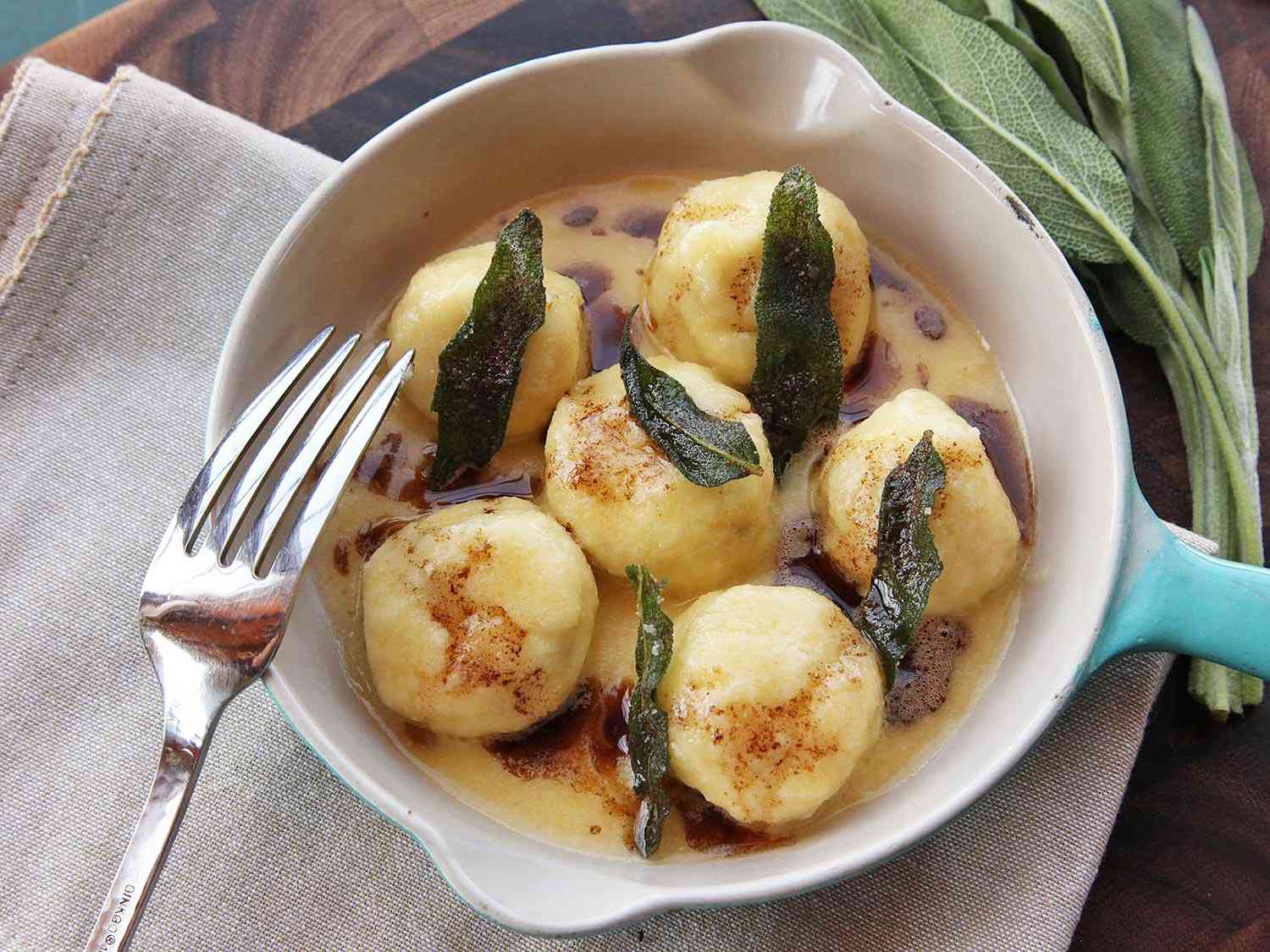 Gnudi comes from the old Tuscan-language equivalent of the word for "naked" in Italian, a name that's both thematically appropriate for Valentine's and practically descriptive of the ricotta gnudi: dumpling-like spheres of soft and creamy ricotta that lack a true pasta shell. Instead, they're individually coated in a layer of semolina flour—a step that's made quicker and easier with a partner—then allowed to sit until the thinnest of skins form on their exteriors. You'll need to plan ahead for that step, as it can take a few days. But above all, don't skimp on the quality of the ricotta! With barely a fig leaf of pasta to cover it, so to speak, the cheese is highly exposed, which means it needs to be in top form. If excellent ricotta that contains no gums or stabilizers isn't available commercially where you live, tack on a bonus cooking project by making your own—it's much easier than you think.