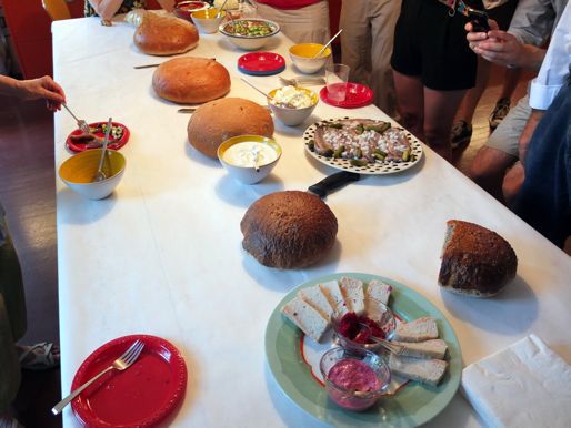 This is another boule, made from rye starter, white flour, water, caraway seeds, salt yeast, and an ingredient not available to the bakers of Eastern Europe: Righteous Rye Ale from Sixpoint Brewery. The result is a chewy loaf with the requisite nutty, grain aroma. I only wish I could get it hot from the oven.