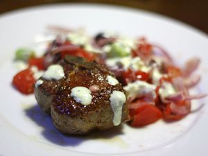Lamb Loin Chops with Greek Salad and Yogurt-Lemon Sauce Recipe