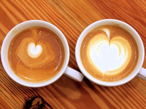 Advanced Positioning: If you pour with the cup sitting flat on top of a counter or table, it's easier to aim for the center but it won't give you as much depth of crema for the foam to settle on when you're trying to make your design. If you tip the cup slightly at the beginning of the pour and steadily straighten it throughout, you'll have to gently reposition your stream of milk so that it's centered, but you'll get better contrast between the white and brown when you master the subtle skill.