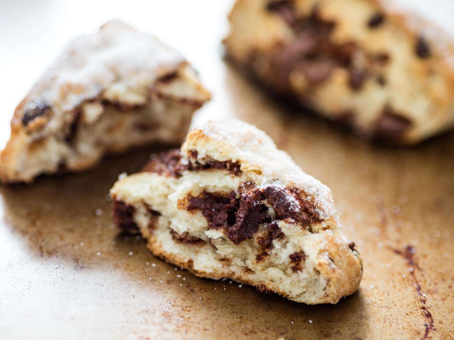 Vicky Wasik As with my lemon-blueberry scones, the dough here is just barely sweetened, with most of the sugar coming from the chocolate itself. So instead of a sweet milk chocolate, choose something bitter and dark for a bold take on chocolate scones.