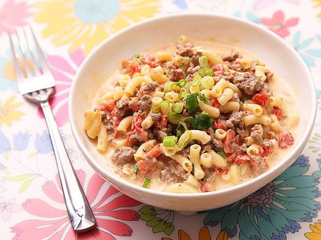 Once you've familiarized yourself with cheeseburger dip, it's no stretch of the imagination to toss in some noodles. That's basically what we do here, making mac and cheese with ground beef, scallions, and Ro-Tel tomatoes. If, for some reason, Ro-Tel isn't available where you live, you can substitute one can each of diced tomatoes and diced chilies (although you can always order Ro-Tel tomatoes online).