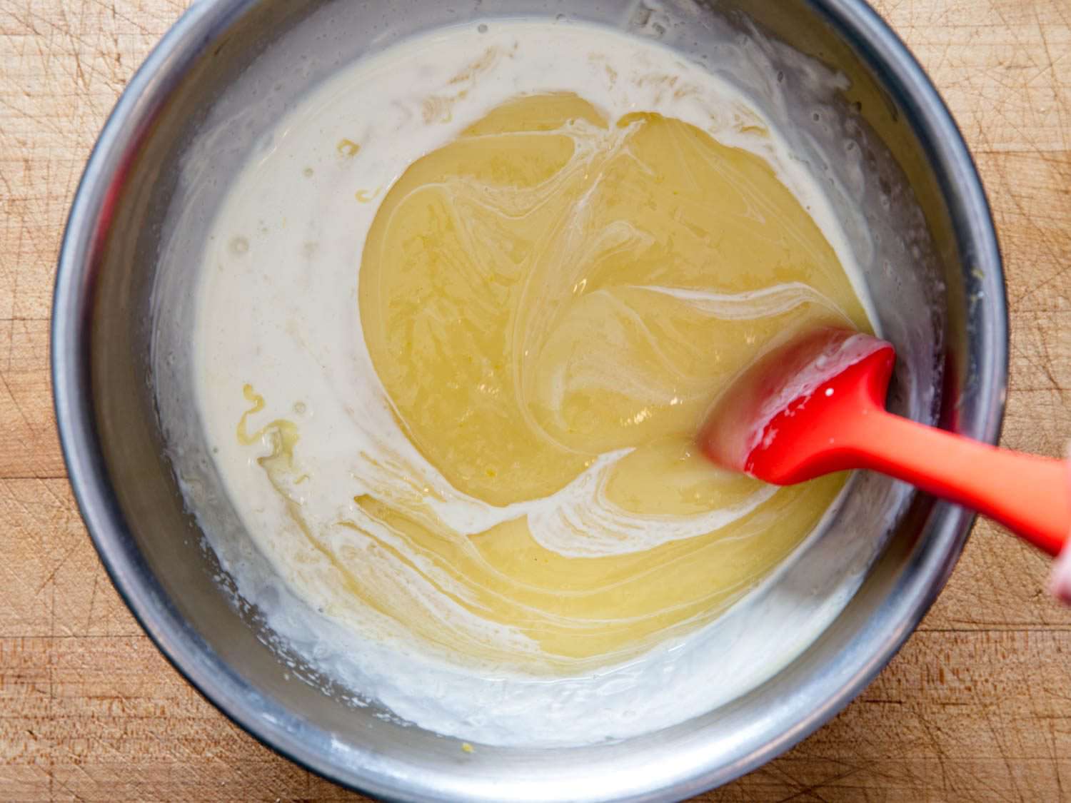 My approach to this ice cream isn't exactly traditional, but it's easy as pie—quite literally, as the formula's based on the filling of my creamy lime pie. It makes for a fairly lean but super-intense foundation; nothing but sugar, cornstarch, whole eggs, and Meyer lemon juice and zest.
