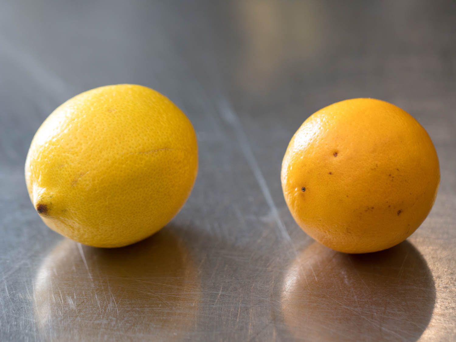 My initial tests, with classic supermarket lemons, were almost painfully sour. So when thin-skinned Meyer lemons started showing up, I knew I'd found my solution to the ice cream of his dreams. Compared to the lemons we get all year round, Meyer lemons have an undeniable sweetness behind their gentle bite, and a more floral aroma. For that reason, they can be a little lackluster in recipes that need a strong dose of acidity to cut through lots of sugar and fat—for me, Meyer lemons can be a little cloying in lemon bars and curd.