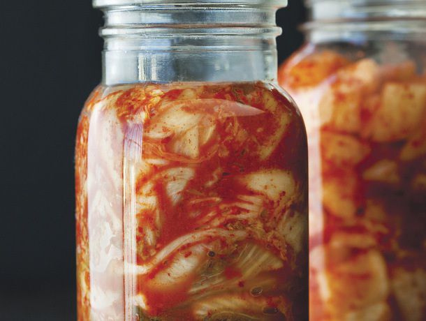 Napa cabbage is the backbone to many a kimchi recipe, so it seems natural to begin a kimchi-making adventure with a leafy ferment. In Lauryn Chun's The Kimchi Cookbook, she presents a recipe for the house pickle from her company, Mother-in-Law's Kimchi. As she writes in the intro to the recipe, Chun's recipe is a variation on a fall harvest kimchi, typically eaten fresh, immediately after mixing. Chun prefers to ferment the mixture of chile flakes, salted shrimp, garlic, ginger, and cabbage for a few days before eating; this is how her product is sold. The moderate fermentation time allows the seasonings to mellow a bit and take on kimchi's signature effervescent quality.