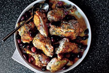 For this recipe, you'll want to start with a whole four-pound chicken that you've cut down into eight serving pieces. You can either ask your butcher to do this for you, or follow our step-by-step guide. It's really quite easy and a useful skill to have. Starting with a whole chicken gives you the benefit of a backbone to add flavor to your sauce, which we'll get to shortly.