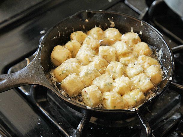 Parisian gnocchi (or, more accurately, gnocchi à la Parisienne) are the even pillowier, even easier to make cousin of Italian gnocchi. And one of the easiest and tastiest ways to cook them is to broil them in a cast iron skillet.