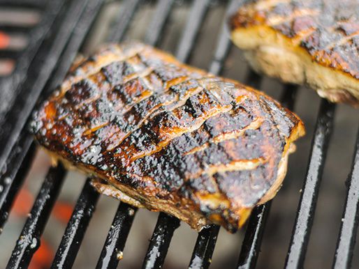 Light one chimney full of charcoal. When all the charcoal is lit and covered with gray ash, pour out and spread the coals evenly over entire surface of coal grate. Set cooking grate in place, cover grill and allow to preheat for 5 minutes. Clean and oil the grilling grate. Place duck breasts on grill, skin side down, and cook until skin has browned and crisp, about 5 to 7 minutes. Flip and continue to cook until an instant read thermometer registers 130 degrees when inserted into middle of breasts. Remove duck from grill and let rest for 5 to 10 minutes.