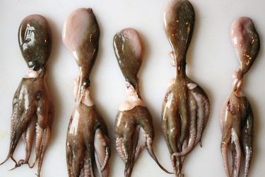 One tip that I've heard for years is that frozen octopus cooks up more tender than fresh, the thinking being that the ice crystals that form within the flesh during freezing make micro-lacerations that tenderize the meat. This one actually does make a lot of sense to me, but I've never had much luck testing it side by side, since truly fresh octopus is hard to come by. (Don't make the mistake of assuming that the unfrozen octopus at your fishmonger hasn't been frozen before; like shrimp, it almost always has.) Still, even though I'll happily buy frozen octopus with the hope that it'll give me an edge in the quest for tenderness, it requires the same lengthy cooking that all octopus does.
