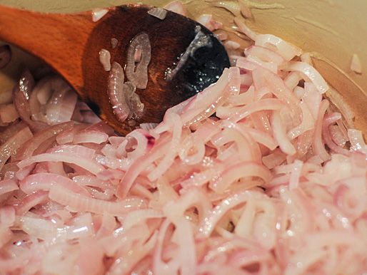 Heat olive oil in a medium skillet over medium heat until shimmering. Add onions and cook until softened and just translucent, 8 to 10 minutes, stirring occasionally.